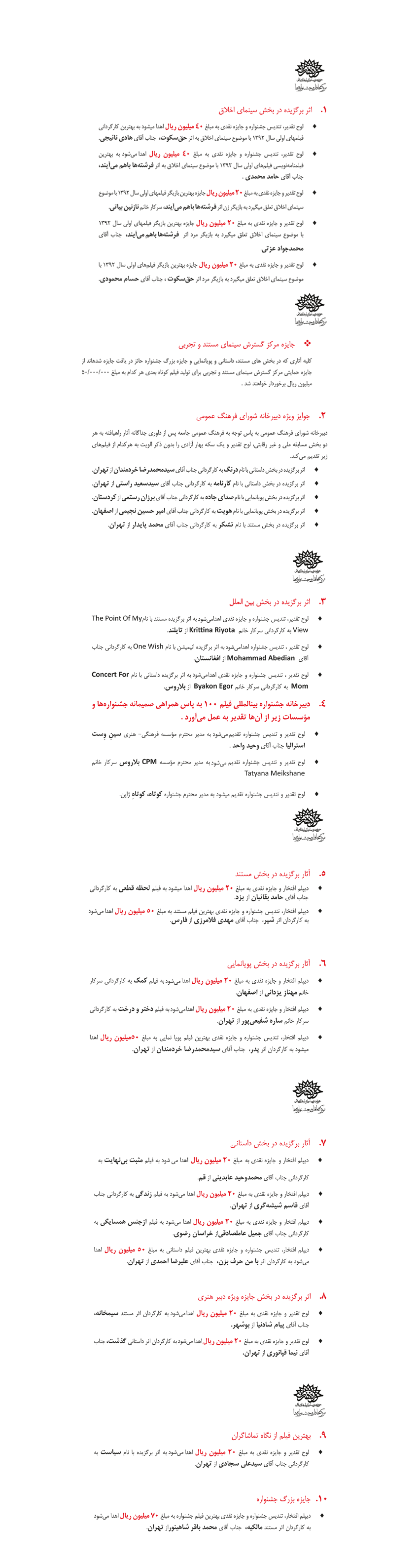 روز اختتامیه هم تمامی برنده ها مشخص شدن و جایزه هاشون رو دریافت کردن